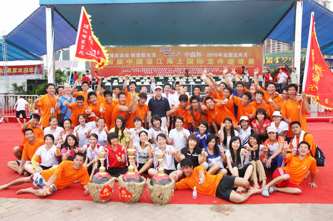湛师新闻网18日讯 6月16日,第四届中国湛江海上国际龙舟邀请赛在金沙湾落下帷幕,我校女子龙舟队勇夺女子组亚军,男子龙舟队则获得湛江公开组第五名。