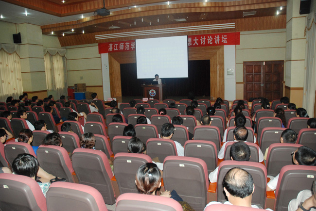 湛师新闻网6月13日讯 6月10日下午,我校在图书馆学术报告厅举行统一战线教育思想大讨论讲坛。全校统一战线成员(上课除外),包括各民主党派成员、无党派成员、人大代表、政协委员、留学归国人员、少数民族教职工出席了讲坛。罗海鸥院长、邵乐喜副院长作专题辅导报告,讲坛由统战部邓妍妍部长主持。