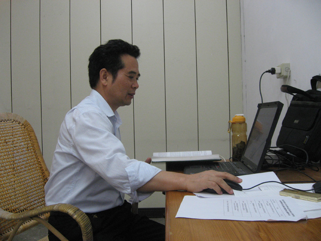 曾富华教授在屏东教育大学科学馆5楼办公室备课