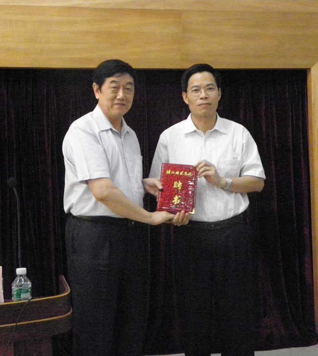 湛师新闻网5月27日讯 昨天下午,南开大学常务副校长陈洪教授在我校图书馆学术报告厅受聘为我校客座教授并作了“读金庸——金庸小说之文化价值以其他”的学术报告。校院长罗海鸥、校党委副书记刘海涛、人文学院熊家良院长、刘惠卿副院长、关工委谭笑副教授、人文学院辅导员黄河、谢明亮老师以及学生代表出席了本次报告会。报告会由校党委副书记刘海涛主持。