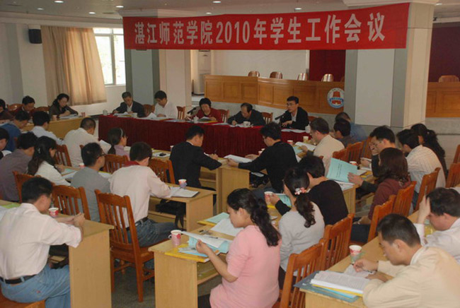 湛师新闻网3月22日讯 3月19日下午,我校2010年学生工作会议在学术交流中心三楼会议厅召开。学院党委张兰英副书记、学生指导委员会成员、各二级学院分管学生工作党委副书记、学生处干部以及全体辅导员出席了会议。会议由张兰英副书记主持。