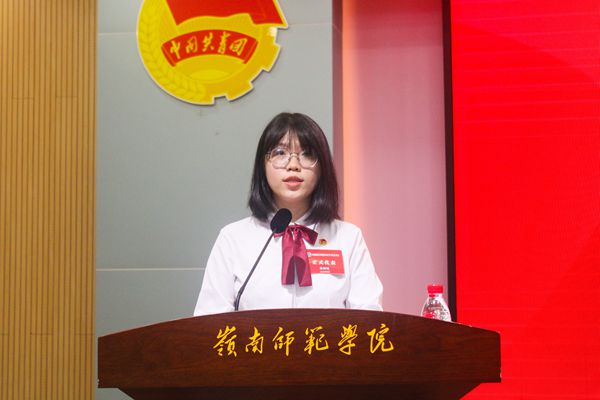 团湛江市委副书记陈科全在致辞中希望岭师学生会聚焦政治引领,建设信念坚定的学生会;勇于自我改革,建设清新阳光的学生会;牢记服务宗旨,建设根植同学的学生会,为推动学校和湛江的建设发展作出更大更积极的贡献,谱写最亮丽的青春华章。