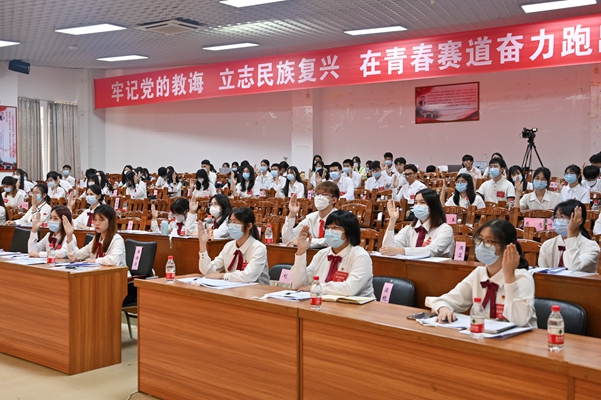 大会强调,要更加紧密地团结在以习近平同志为核心的党中央周围,高举习近平新时代中国特色社会主义思想伟大旗帜,在推进学校高质量发展、实现中华民族伟大复兴的中国梦的新长征路上奋勇搏击,勇毅前行,在青春的赛道上奋力奔跑,以优异青春业绩迎接党的二十大胜利召开!