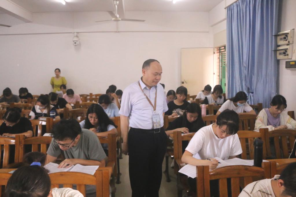岭师新闻中心讯:6月21日,学校党委书记兰艳泽、校长阳爱民、副校长金义富等校领导带领相关职能部门及二级学院负责人,深入各教学楼考试现场进行巡视检查,以加强期末考试管理,严肃考风考纪,保障考试工作顺利开展。