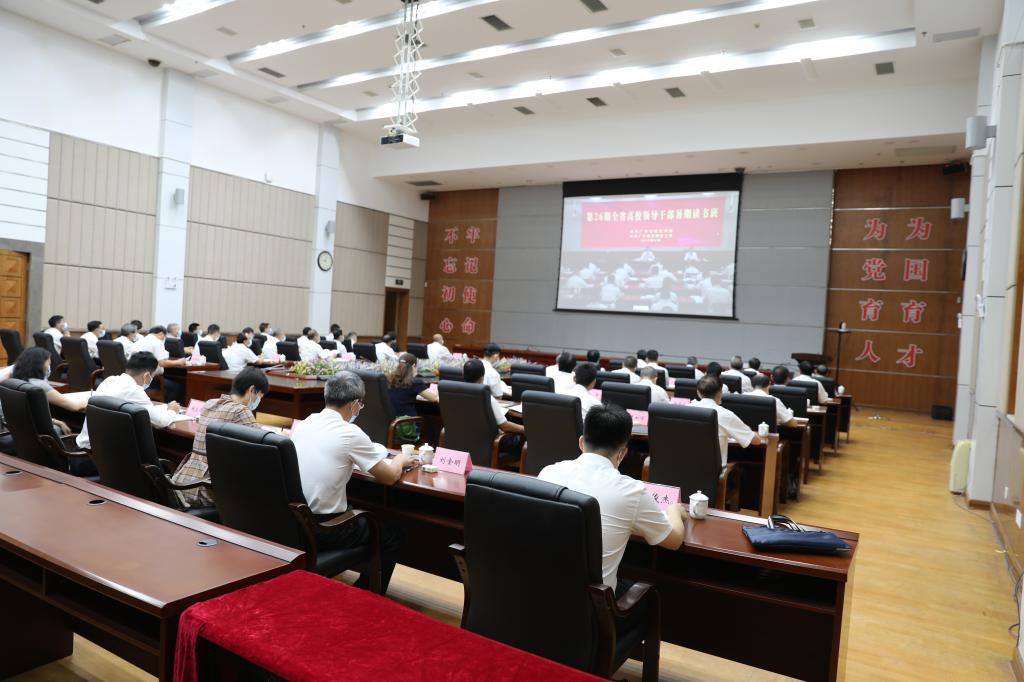 岭师新闻中心讯:8月20日-21日,省委组织部、省委教育工委举办第26期全省高校领导干部暑期读书班。读书班通过网络视频的形式举办,主会场设在省教育厅,21个地级以上市设置了29个分会场。湛江分会场设在岭南师范学院,湛江市副市长吴国雄、市教育局局长陈升,广东海洋大学、广东医科大学、岭南师范学院、湛江幼儿师范专科学校、湛江科技学院、广东文理职业学院等六所在湛高校的领导班子成员、党委组织部部长、宣传部部长、统战部部长在国际会议厅参加专题学习。