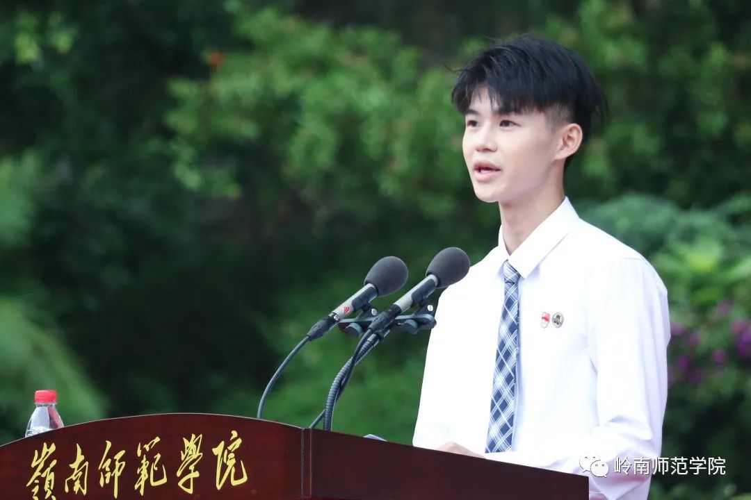 教育科学学院2022级小学教育专业的古槟源作为新生代表发言,分享了他选择岭师、报考定向公费师范生的初心,表示要做一名踔厉奋发、笃行不怠的岭师人,向阳而生,自强不息,无畏艰难,与时代同行,共写青春华章。