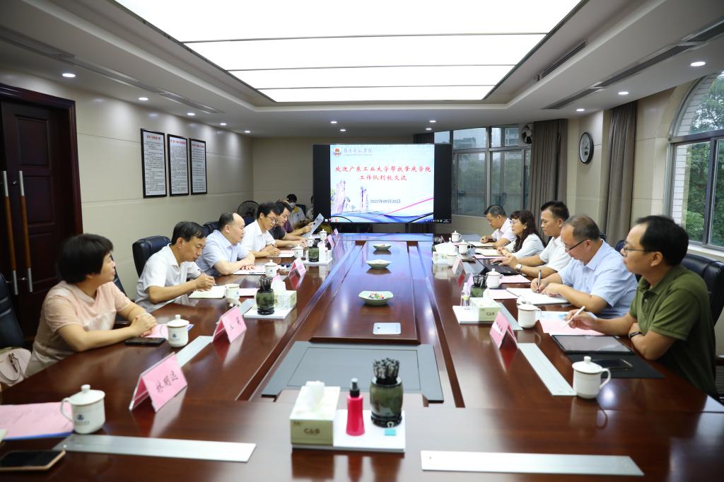 刘怡军对岭南师范学院的热情接待表示衷心感谢。他介绍了广东工业大学帮扶肇庆学院的工作开展情况及成效、工作思路与方法及下一步工作重点等。他希望以这次交流为契机,相互学习借鉴、加深交流合作、共同推进双方帮扶工作落地见效。