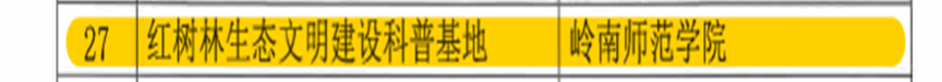 近日,广东省社会科学界联合会发布了《关于认定广东省社会科学普及基地的通知》,我校“红树林生态文明建设科普基地”获得认定。该科普基地是由学校马克思主义学院副院长、红树林研究院红树林精神与生态文明研究团队负责人施保国教授牵头申报,经学校科学研究处指导、地级以上市社科联推荐,省社科联党组审核获得认定。今年广东省社会科学普及基地共认定140家“标准型基地”、30家“提升型基地”和67家“孵化型基地”。“红树林生态文明建设科普基地”是学校唯一获得认定的“孵化型基地”。