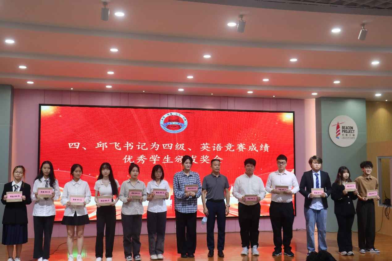 学院党委书记邱飞为四级、英语竞赛成绩优秀学生颁发奖金