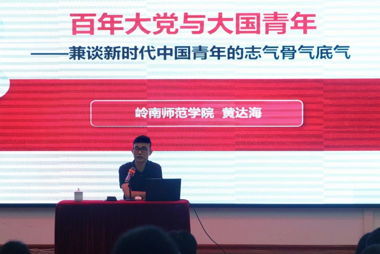 黄达海围绕《百年大党与大国青年——兼谈新时代中国青年的志气骨气底气》主题,从“中国共产党是什么样的政党”“百年党史的深刻启迪”“新时代的中国青年”“青年要增强做中国人的志气、骨气、底气”等四个方面,理论结合实际,深入浅出、旁征博引、多层次系统性地为入党积极分子展开授课。他指出,中国共产党是全心全意为人民服务、为实现理想不断奋斗、具有强大领导力执政力、始终保持旺盛生机活力、为人类和平与发展贡献力量的政党,在百年奋斗征程中涌现出了一大批视死如归的革命烈士、顽强奋斗的英雄人物、忘我奉献的先进模范,形成了一系列伟大精神,构筑起了中国共产党人的精神谱系,为我们立党兴党强党提供了丰厚滋养。他强调,新时代中国青年正生逢盛世、共享机遇、素质过硬、全面发展、勇挑重担、堪当大任、胸怀世界、勇于担当,要通过学习党的百年历史以获得深刻的启迪感悟,深刻理解增强做中国人志气、骨气、底气的内涵,从多维视角思考增强做中国人志气、骨气、底气的价值,并从三个方面增强做中国人志气、骨气、底气的实践方略:在中华民族伟大复兴的实践中增强做中国人的志气;在攻坚克难的艰苦奋斗中增强做中国人的骨气;在强国有我的服务奉献中增强做中国人的底气,努力成为堪当民族复兴重任的时代新人。