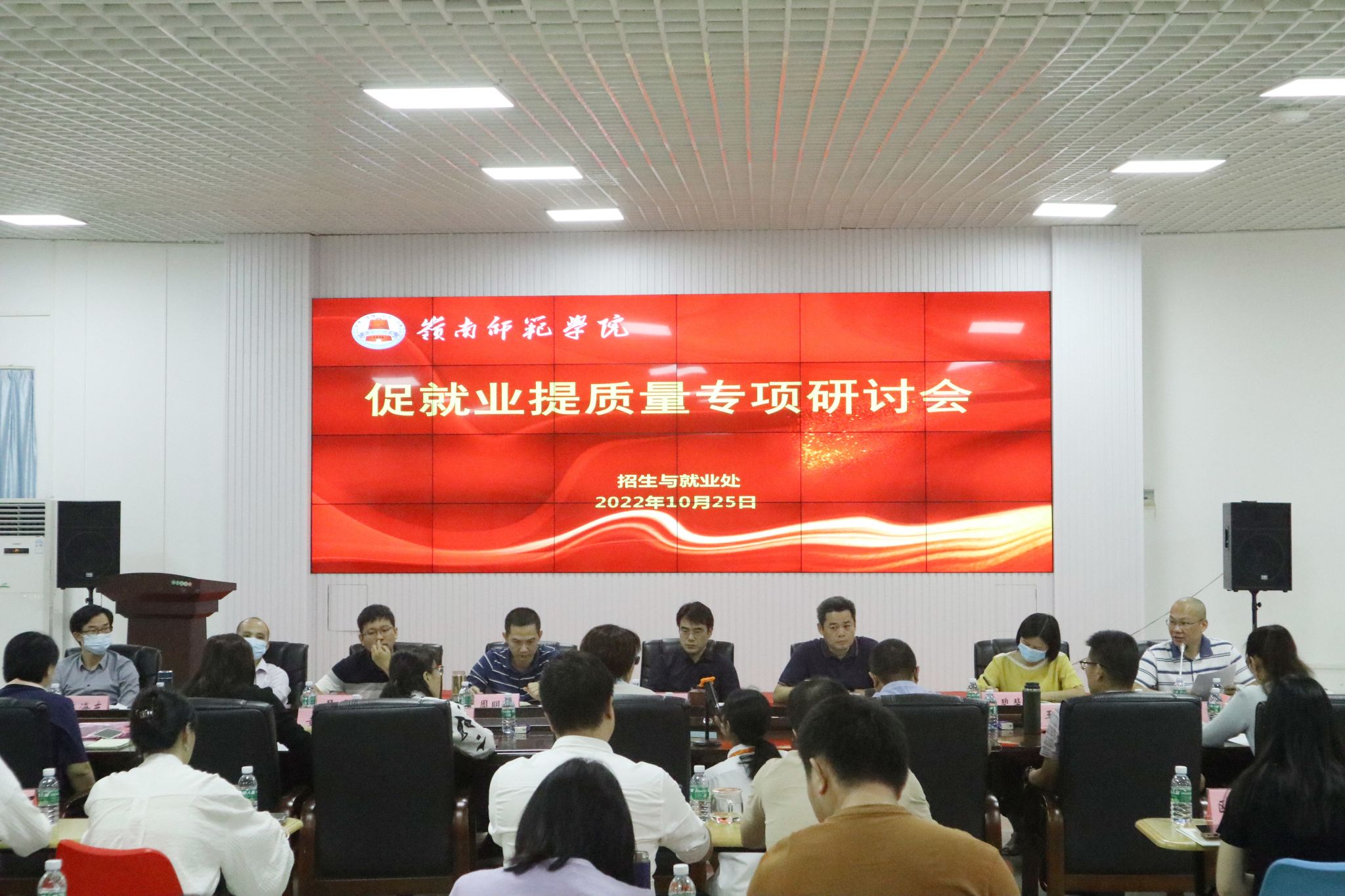 岭师新闻中心讯: 10月19日和25日上午,为期两天的促就业提质量专项研讨会在招生与就业处多功能厅举行。各二级学院就本学院就业工作情况进行了分享、对相关疑难问题进行了交流研讨。学校副校长戴黍出席会议并讲话,招生与就业处处长李粤主持会议。