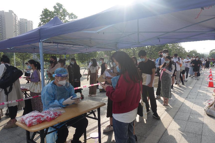 本次考试根据学校要求,严格落实考生安全进校工作,在南校门处设置专门核酸检测点,安排进校考生进行核酸检测。各分考场入口处设有考生信息登记处、志愿者指引处等,引导考生有序登记入场。来校考生凭考前三天三检的核酸检测单、24小时核酸检测报告和相关的健康信息表进校,同时要凭进校后的考前核酸检测单进考场。