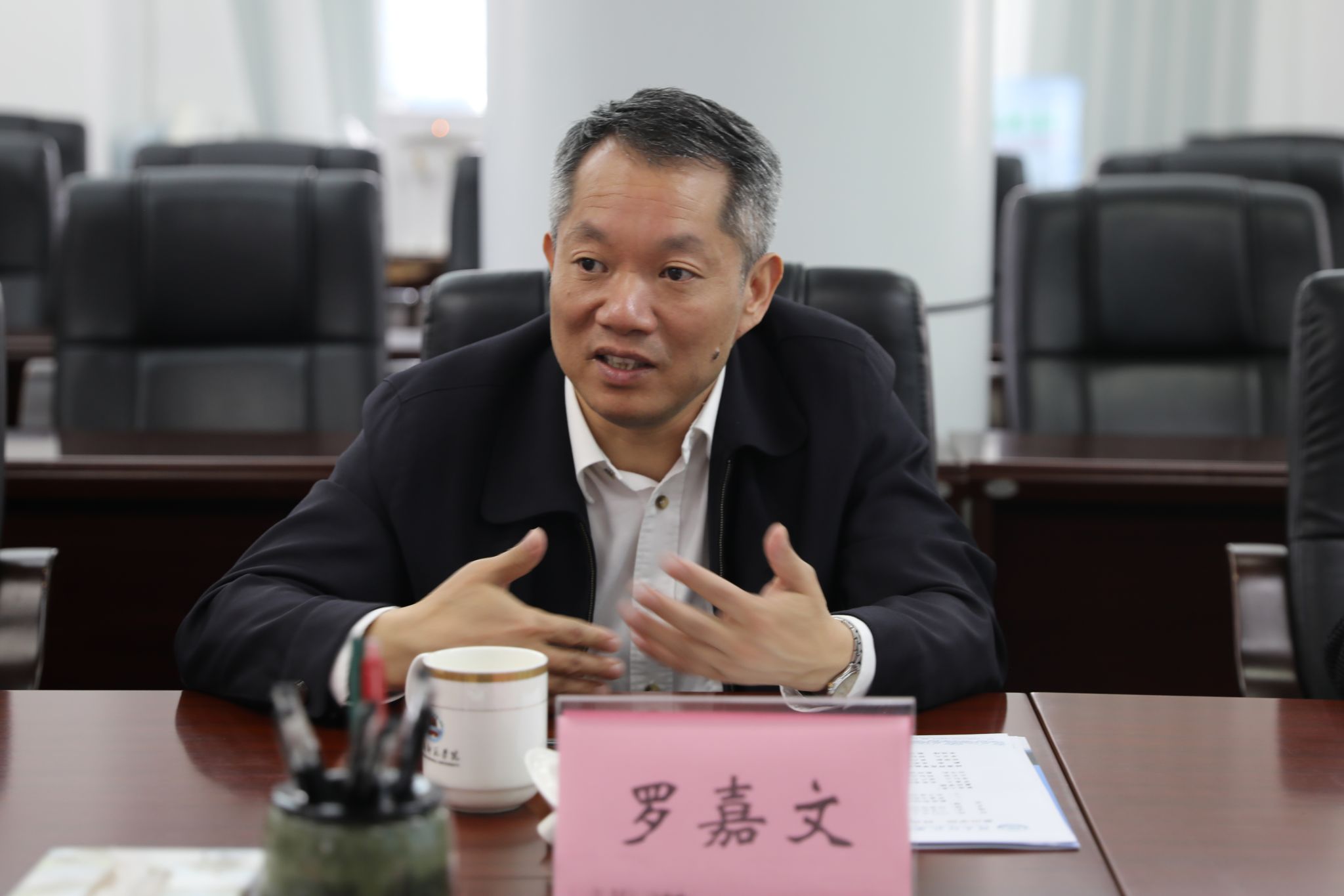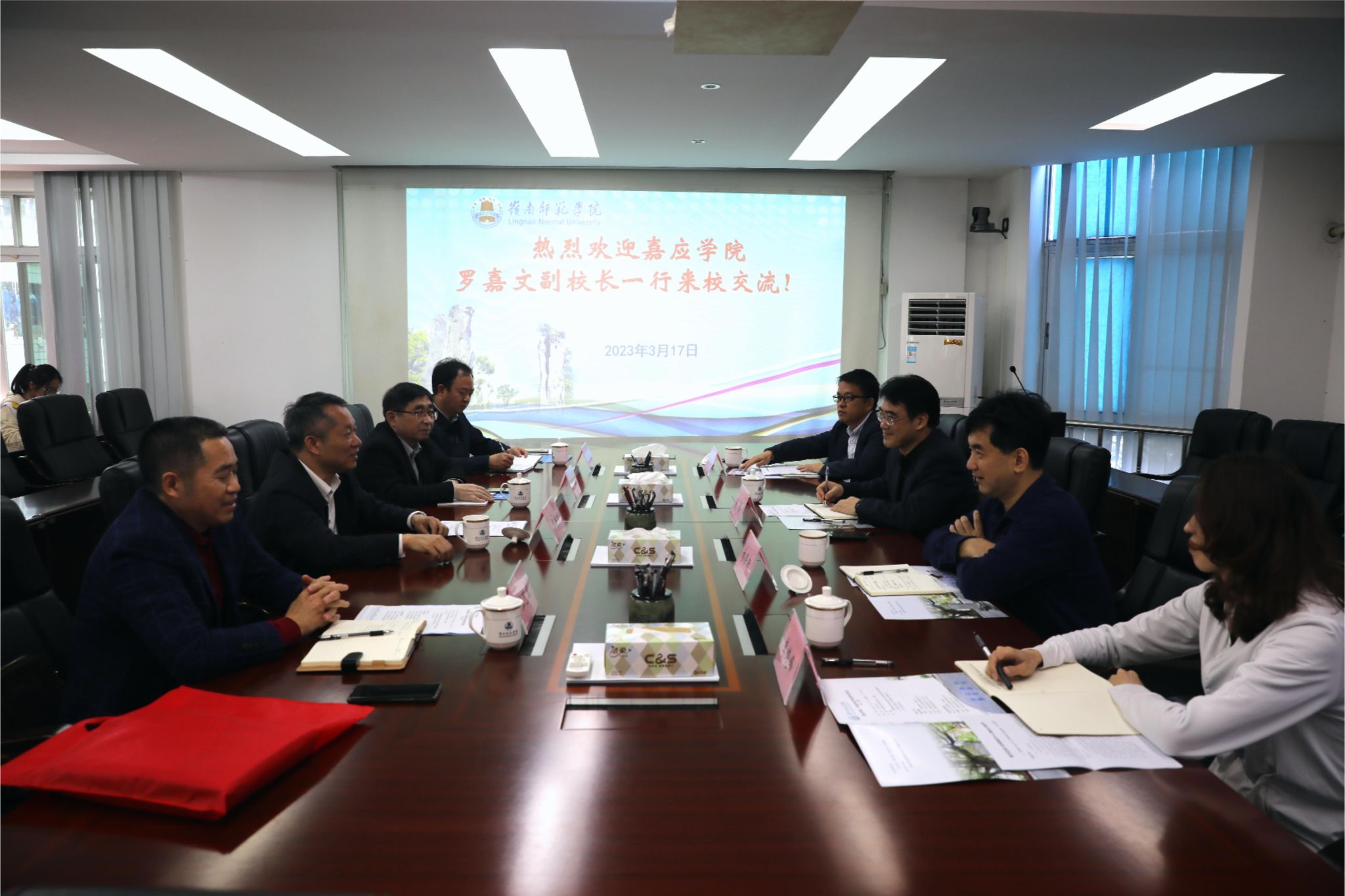 戴黍对罗嘉文一行的到来表示热烈欢迎,并从学校办学历史、本科师范教育办学规模、湖光校区建设规划等方面简要介绍了学校的基本情况。戴黍希望两校能以本次学习交流为契机,通过实地考察、相互交流等方式实现取长补短、共同进步,推动教育教学水平高质量发展。