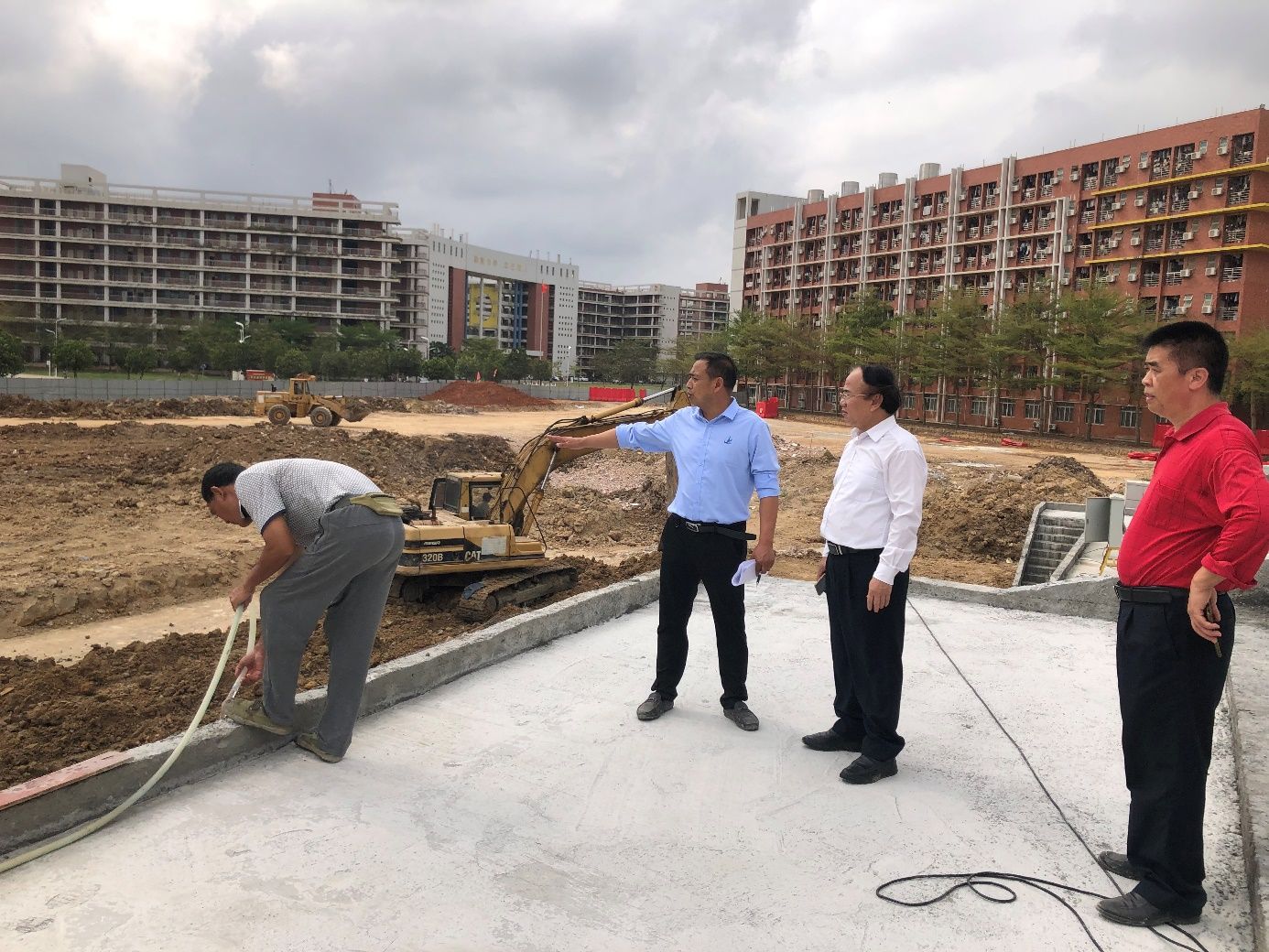 3月20日下午,学校副校长苏古发来到南门运动场施工现场,检查指导工程建设,听取了基建处工作汇报和施工单位的工程进度汇报。