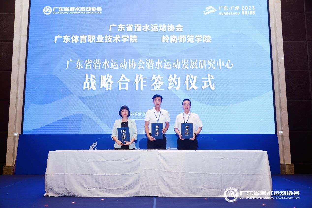 广东省潜水运动协会、广东体育职业技术学院、岭南师范学院三方战略合作签约仪式现场