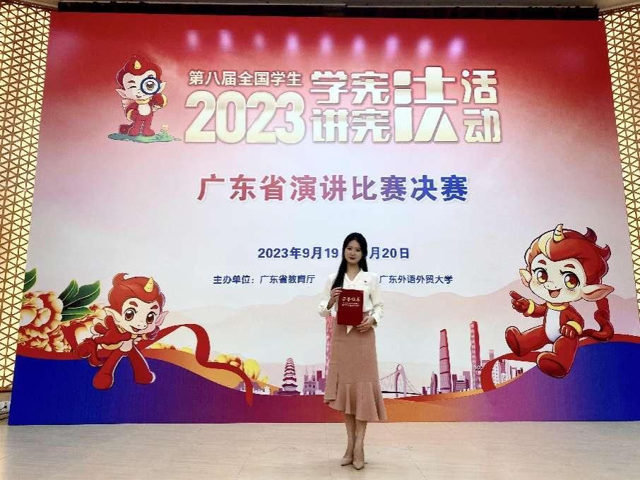 近日,第八届全国学生“学宪法 讲宪法”广东省决赛成绩公布,由学校规划与法规处组织选送的文学与传媒学院21级汉语言文学专业朱雨君同学(指导老师:姚远、杨丽君)荣获法治演讲比赛高校组二等奖(全省第5名),法政学院21级法学专业陈微微同学(指导老师:孟庆吉、林学科)荣获法治素养竞赛高校组三等奖。