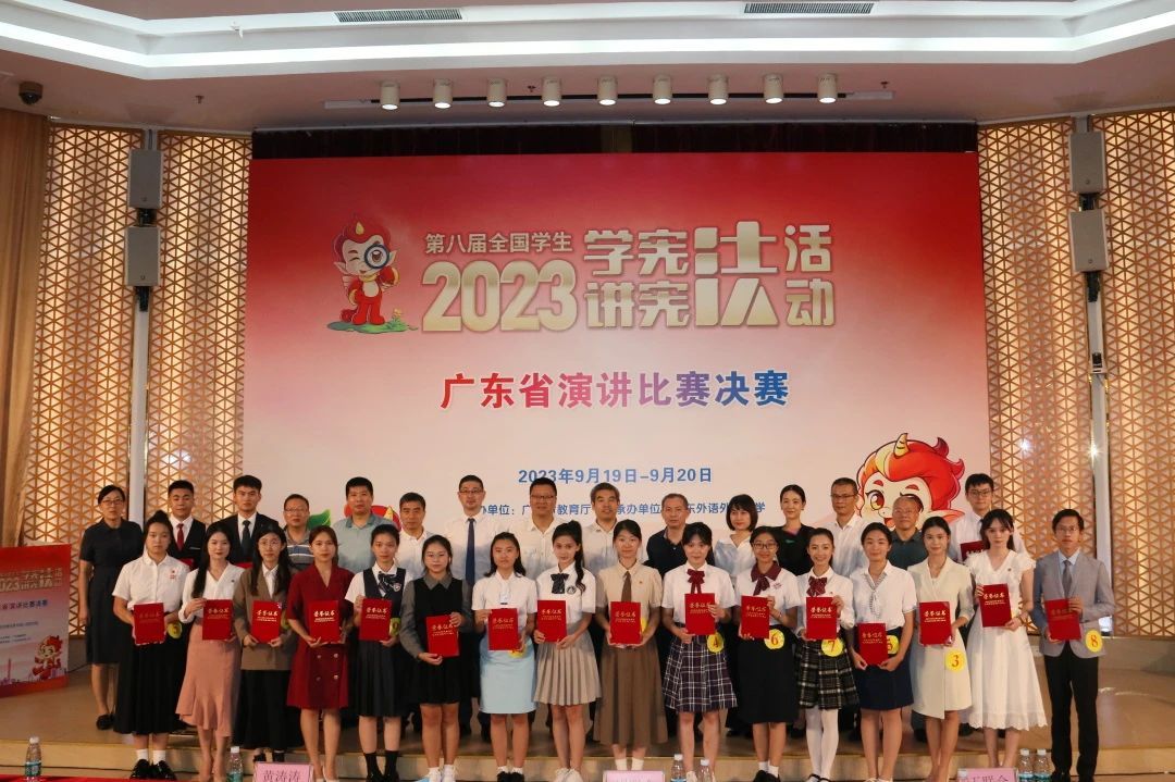 本届学生“学宪法 讲宪法”活动以习近平新时代中国特色社会主义思想为指导,深入学习贯彻习近平法治思想,落实习近平总书记关于加强宪法法治宣传教育的系列指示精神,持续深入开展青少年宪法宣传教育,逐步健全常态化长效化机制,引导青少年从小树立宪法法治意识,自觉养成尊法学法守法用法的良好习惯。活动分为演讲比赛和素养竞赛两个部分,两个赛事各高校限推1名选手参加,分别吸引了98名、85名选手同台竞技,进入全省前8名的选手参加全省决赛,决赛分一、二、三等奖。学校规法处积极组织,校团委、法政学院、文传学院等单位密切配合,选手发挥出色,最终斩获佳绩。广东省教育厅副厅长朱建华、政策法规处处长戴庆洲等领导出席了决赛活动并为获奖选手颁奖。