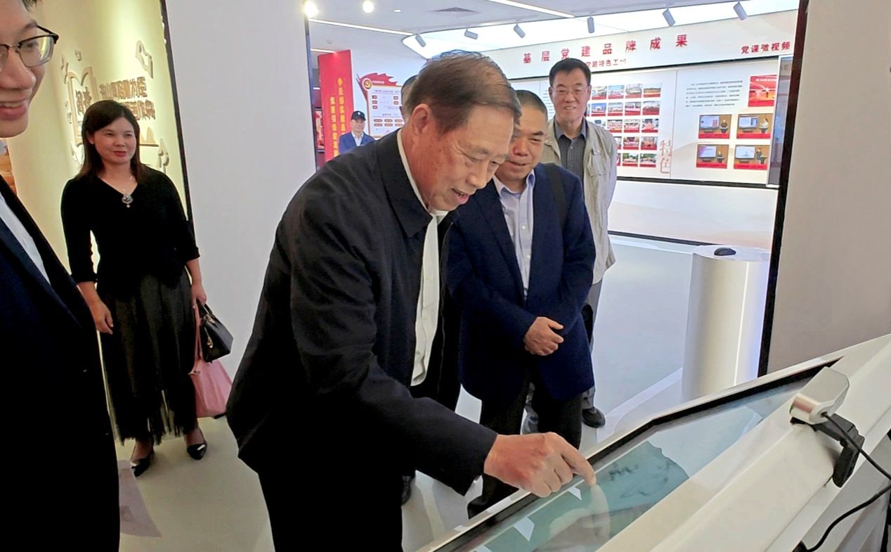 参观党建文化学习教育空间,在党委组织部工作人员讲解引导中,老领导们在数字化、信息化、智能化多媒体融创党建阵地,学习习近平新时代中国特色社会主义思想等党的创新理论、学校党建成果以及校内各级党组织党建风采、经验做法,党建学习空间的时代感、科技感让大家赞叹不已。