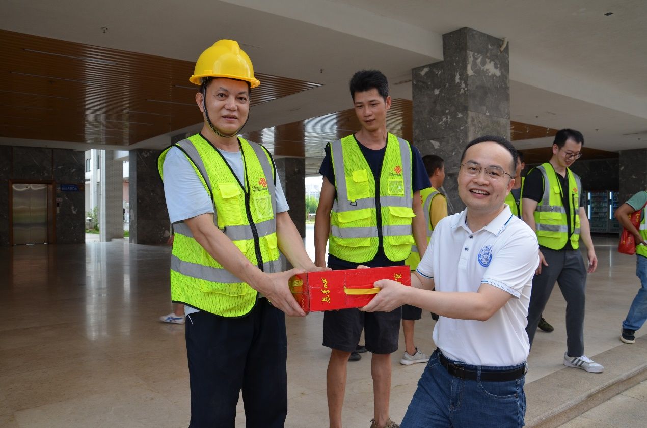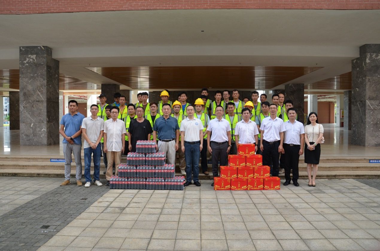 7月25日下午,受校长阳爱民委托,学校党委常委、副校长吴涛到校内公众网施工现场走访调研,了解校园公众网项目施工进展,向在高温下坚守岗位辛勤作业的一线施工人员送清凉,情系一线鼓干劲。