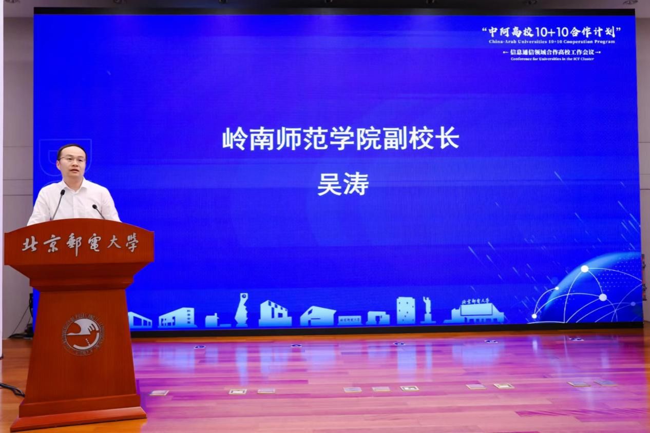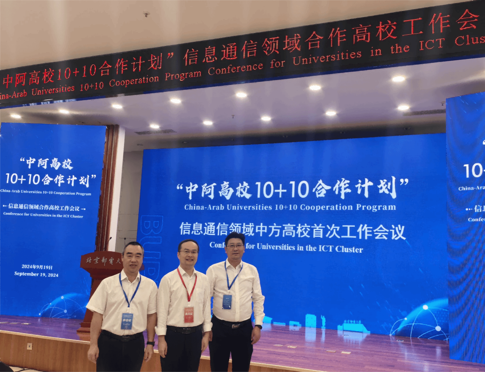 受校长阳爱民委托,9月19日,副校长吴涛率队参加了在北京邮电大学举行的“中阿高校10+10合作计划”信息通信领域合作高校工作会议。教育部国际合作与交流司副司长周莉,中国高等教育学会副会长、秘书长李楠,北京邮电大学校长徐坤、阿方牵头高校利比亚的黎波里大学代表鲁德曼·胡赛因、突尼斯苏塞大学代表阿里·卡迈勒、沙特阿拉伯王国阿卜杜勒阿齐兹国王大学代表伊亚德·卡蒂布、科大讯飞股份有限公司副总裁陈红斌、埃及泰达产业园执行董事徐琪峰出席会议并致辞。吴涛一行和其他43所成员高校代表,“北京邮电大学中阿学生科技交流营”学员等百余人现场参加启动仪式。启动仪式由北京邮电大学副校长苏森主持。我校计算机和智能教育学院院长杨俊杰、国际交流与合作处处长郑志军陪同参会。