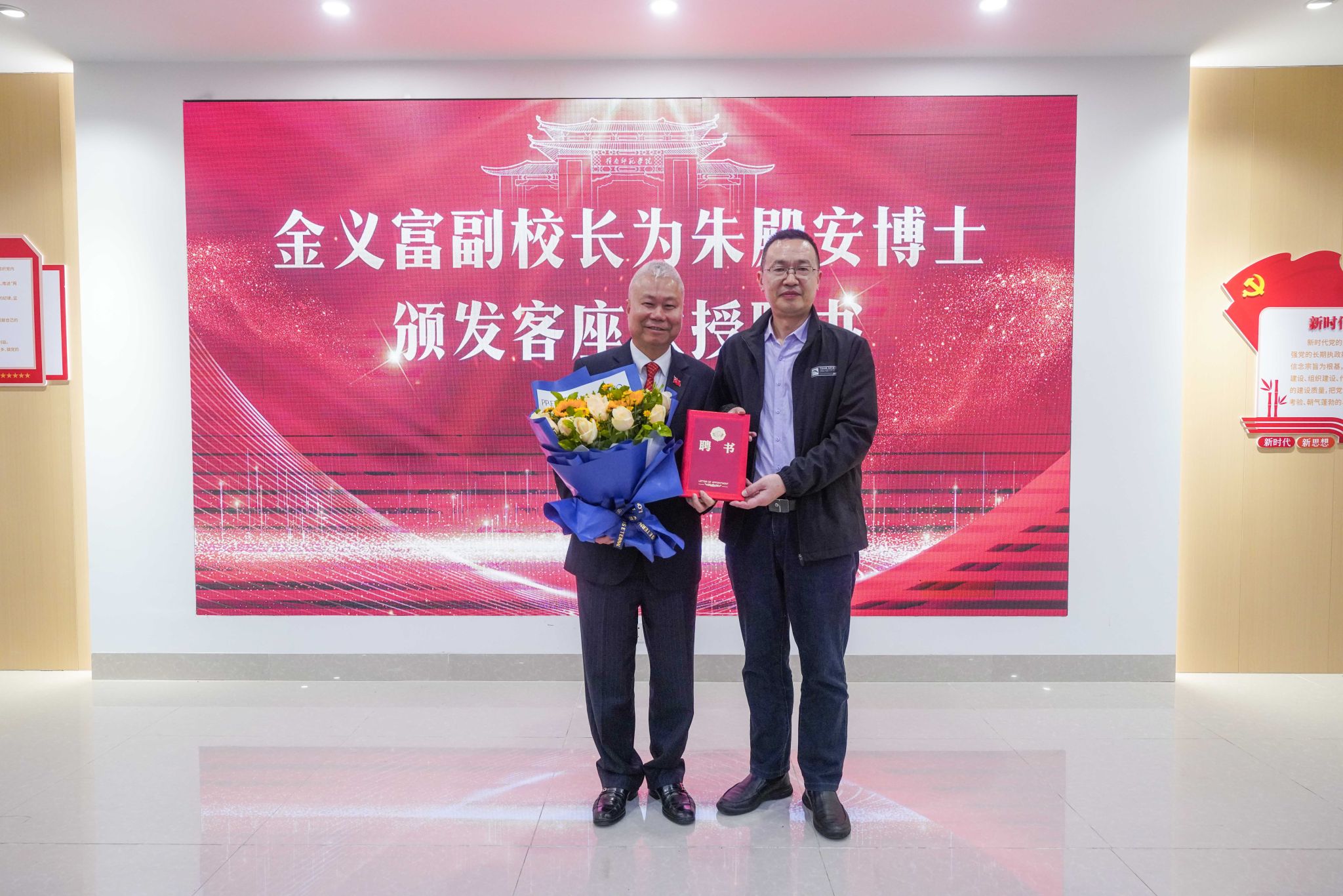 学校副校长金义富为香港津伟集团董事长总经理朱殿安博士颁发客座教授聘书