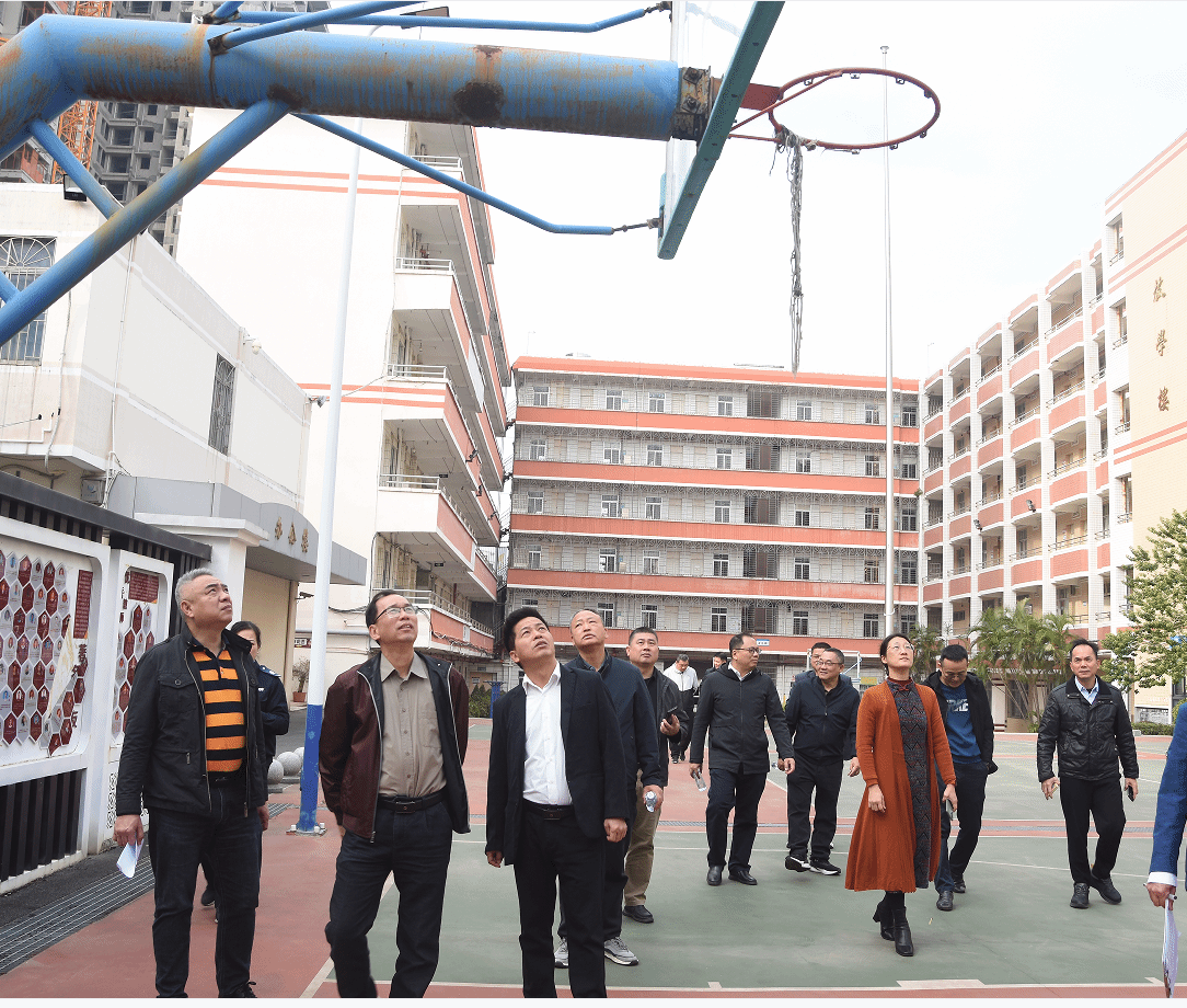 刘坤章一行先后深入寸金校区、椹川校区以及湖光校区,对生化实验楼、榕楼、鹏园饭堂、园府酒店、幼儿园、第一综合实验楼、学生公寓、生活超市、供电房、安保管理中心等校园内重要场所和关键部位进行了细致入微的实地走访。