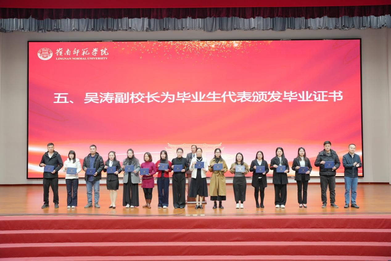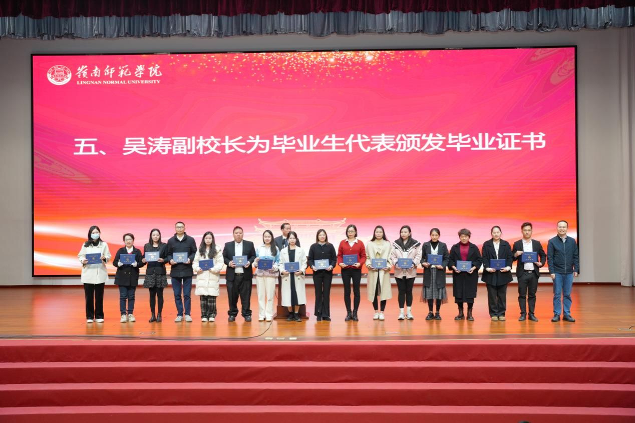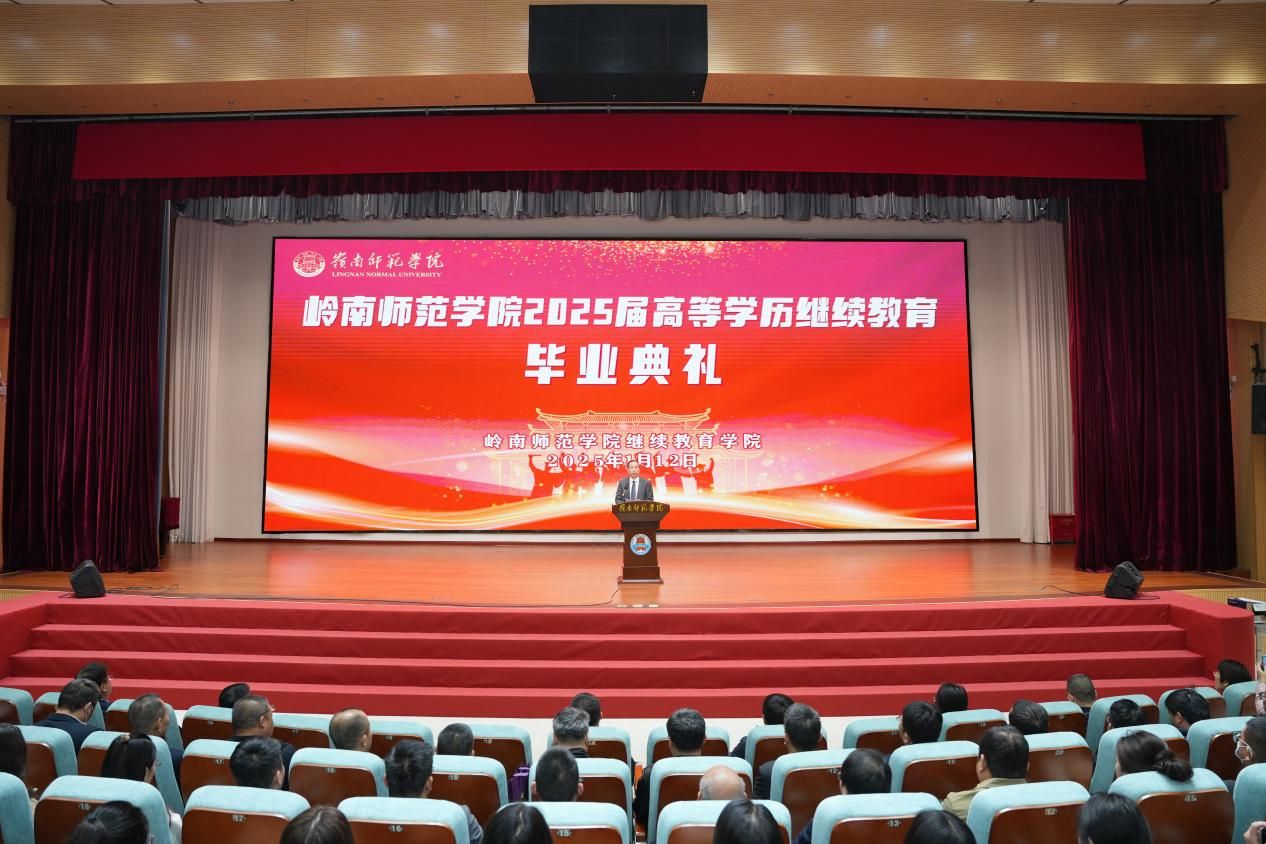 1月12日,岭南师范学院2025届高等学历继续教育毕业典礼以线上线下相结合的方式举行,1万余名毕业生带着师长的殷殷嘱托、家人的深深祝福、同学的绵绵情谊,在满满的仪式感中吹响奔赴新征程的号角。学校副校长吴涛、二级学院分管继续教育工作领导、教学点负责人及相关人员、2025届高等学历继续教育全体毕业生、继续教育学院全体人员参加了毕业典礼。学校继续教育学院党总支书记、院长曹巧主持毕业典礼。