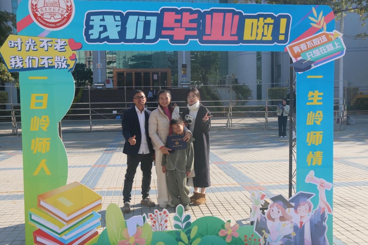 吴涛为毕业生代表颁发毕业证书,随后全体人员起立同唱校歌《师道之光》。在满怀激情的校歌声下,毕业生们纷纷走向学校专门设置的打卡点处合影留念,留下最美好的奋斗印记。