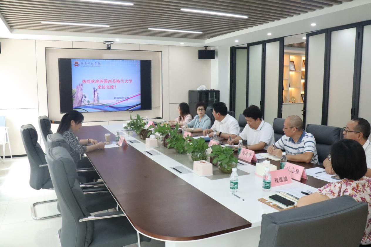 会上,郑志军介绍学校基本情况与国际化办学成果,表达深化合作推动学校高质量发展的期待。陈君介绍了西苏格兰大学的办学特色与发展概况,着重推介了多个本科及本硕连读项目与奖学金计划,建议通过优势学科对接等共同探索国际化应用型人才培养新路径。岭师法政学院党委书记李德深、外国语学院党委副书记杨建伟分别介绍了学院相关情况,均表达了学院对开展学生学习交流项目的强烈意愿,并提出了具体建议。