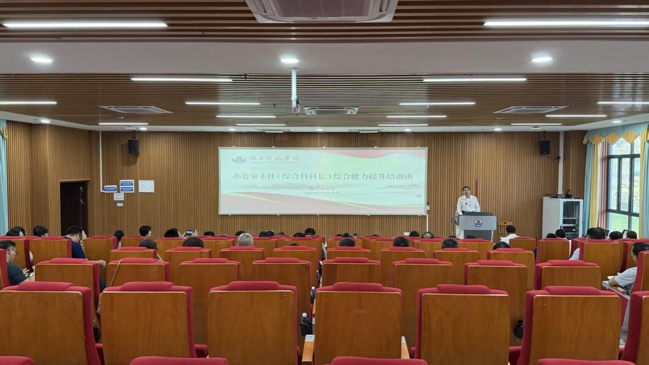 10月10日上午,学校2025年办公室主任(综合科科长)综合能力提升培训班在教五A-102教室正式开班。学校党委林晓敏副书记出席并作开班动员讲话,党委常委、组织部赫云鹏部长出席仪式。校长办公室杨子江主任主持开班式。各二级单位办公室主任(综合科科长)及两办全体成员参加培训。