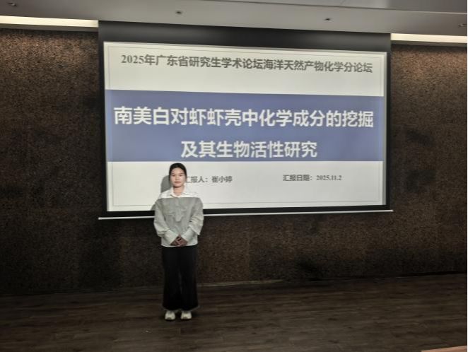 经过激烈的角逐,崔小婷同学的报告—《南美白对虾虾壳中化学充分的挖掘及其生物活性研究》荣获了本次研究生学术论坛报告优秀奖。