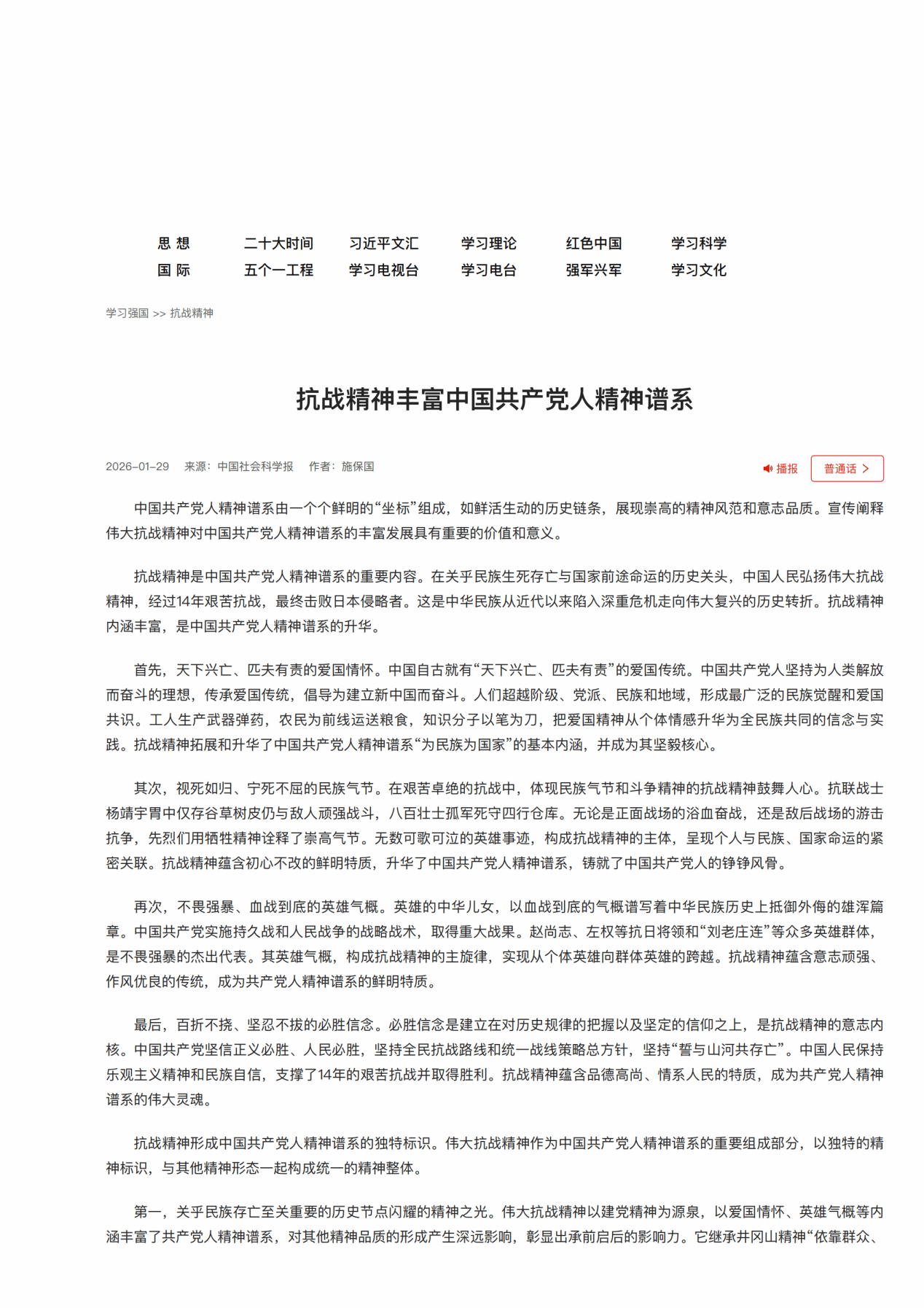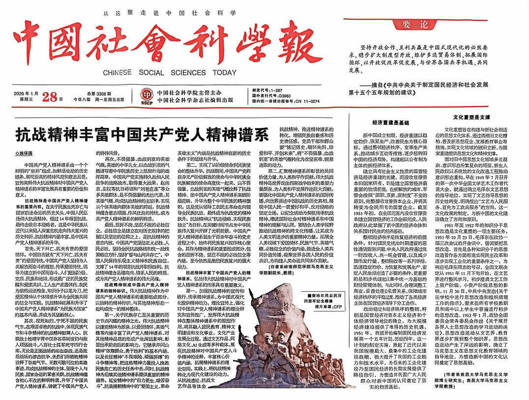 施保国教授于《中国社会科学报》发表文章《抗战精神丰富中国共产党人精神谱系》