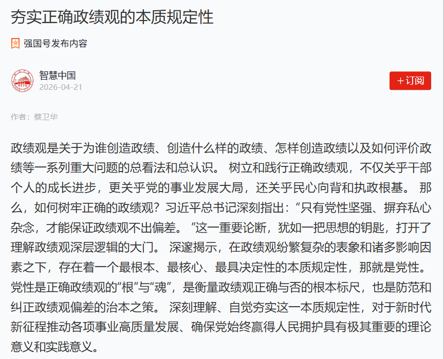 蔡卫华理论文章《夯实正确政绩观的本质规定性》
