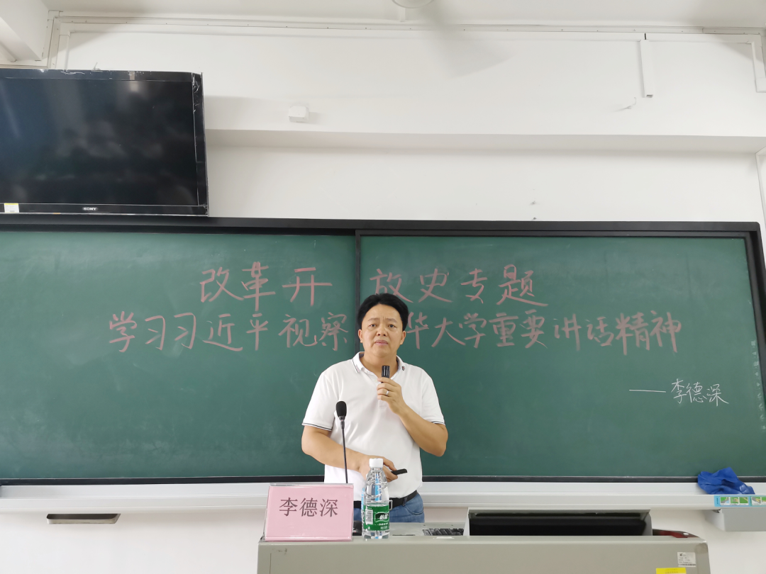 2021年5月15日上午,法政学院党委书记李德深在法政学院分党校2021年春季学期培训班上讲授以改革开放史为主要内容的专题党课,并以“‘听党话,跟党走’,做新时代新青年”为主题,和参加本期培训的发展对象学员一起学习习近平总书记视察清华大学重要讲话精神。