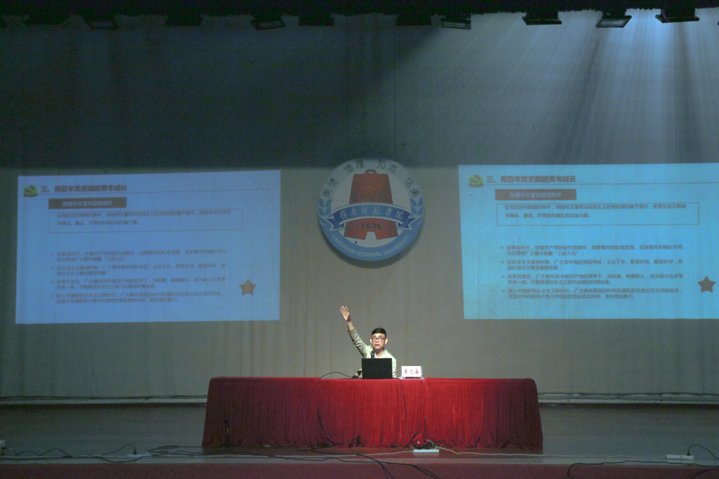 黄达海指出,“新时代的中国青年要以实现中华民族伟大复兴为己任,增强做中国人的志气、骨气、底气”这一论述表达了习近平总书记对新时代青年的深刻关切,有着时代的丰富内涵与特征。黄达海结合青年群体的特征、困惑、优势、使命担当,从多重维度带领在场学生认识青年增强中国人志气、骨气、底气的价值并就青年该如何实现中华民族伟大复兴提出号召,号召岭师青年学子要树立信心,学习优秀文化与光荣历史,练就过硬本领,不负韶华,不负党和人民赋予的历史使命。