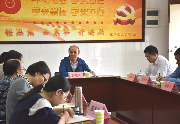 10月27日,化学化工学院党委理论学习中心组举行2021年第13次集中学习会,专题学习习近平总书记在中央人才工作会议上的重要讲话精神。学校党委第十四巡听旁听工作组组长何增光院长及组员卜秋香科长巡听旁听学习会。学院党委理论学习中心组成员、纪委委员、办公室主任、组织员参加会议,会议由学院党委理论学习中心组组长赵海波书记主持。