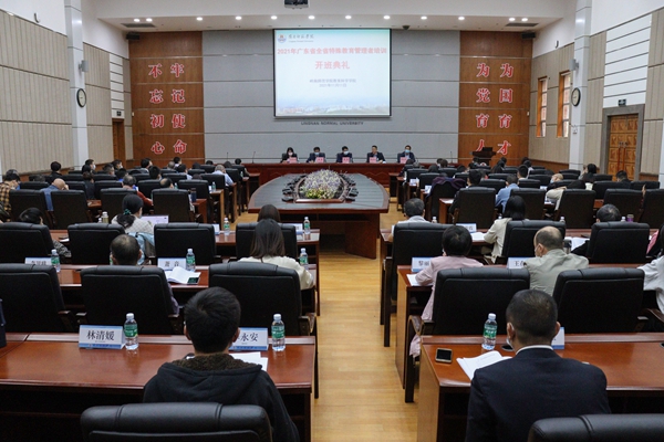 岭师新闻中心讯:11月11日上午,2021年广东省特殊教育管理者培训班开班典礼在岭南师范学院国际会议厅举行。岭南师范学院副校长戴黍,广东省教育厅基信处副处长张正安出席典礼并讲话,教育科学学院党委书记梁晋主持仪式。