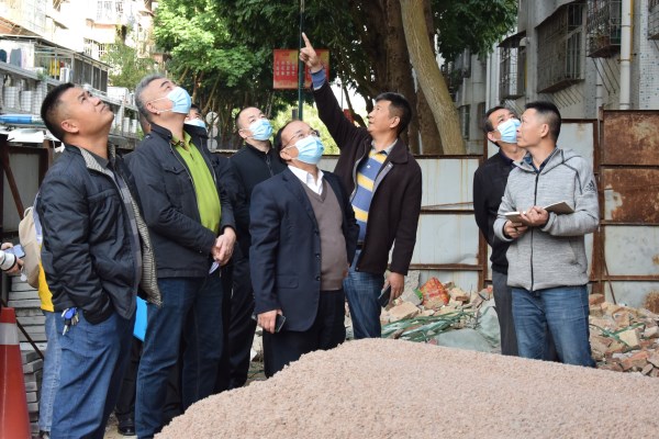 走进327栋第四单元加装电梯工地进行安全检查(李美林 摄)
