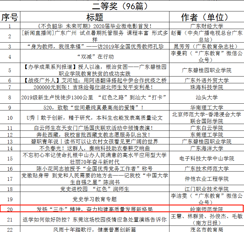 附:广东省教育厅办公室公布2021年广东教育好新闻活动获奖名单