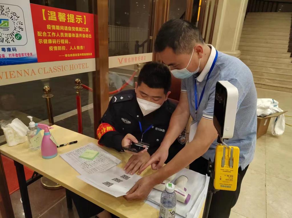 杨健(右一)协助隔离点工作人员完成心理评估问卷