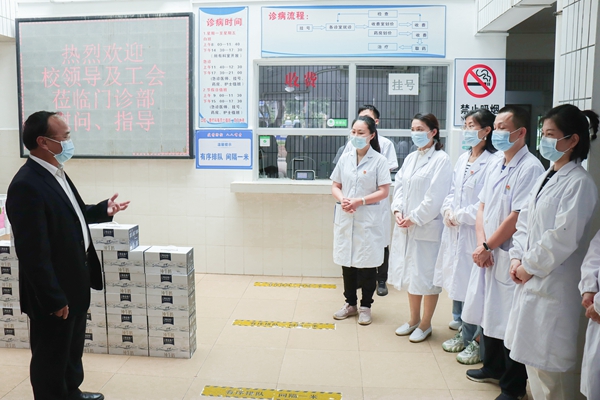 苏古发对门诊部全体医护人员在疫情防控与日常医疗保障中的辛勤付出表示充分的肯定和衷心的感谢。他指出,学校医护人员是全体师生员工健康的卫士,肩负着重要职责和神圣使命,特别是在湛江市“0506”新冠肺炎本土疫情防控期间,医护人员为学校做出了突出的贡献,大家有目共睹,医护人员是“最美逆行者”,是新时代的“战士”,正是因为有了医护人员的坚守和无私奉献,大家在疫情防控中众志成城,校园才得以健康安宁。