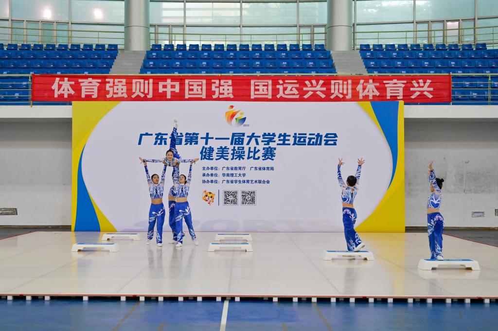 5月8日,由广东省教育厅、广东省体育局主办,华南理工大学承办的广东省第十一届大学生运动会以线上播出的方式正式开幕。受疫情影响,啦啦操、武术套路、健美操三个项目以在学校体育馆线下录制、线上评分的形式进行。三个项目均分甲、乙、丙3个组别,截至5月23日,学校三个比赛项目全部完成。