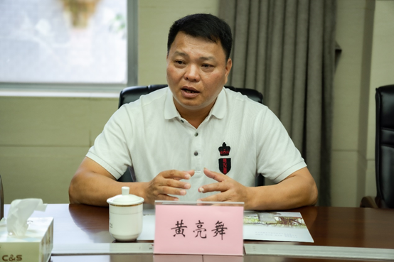 黄亮舞对学校热情接待表示感谢。他介绍了广东丰硒良姜有限公司成立历史以及发展情况,指出近年来公司在徐闻高良姜初加工和深加工领域的技术创新、产品研发、品牌建设、产业带动方面取得了显著成效。并表示当前高良姜产业在技术研发以及病虫害防治上面临较大的困难,希望借此机会能与学校建立长期合作,共同谋划高良姜产业发展,打造湛江特色。
