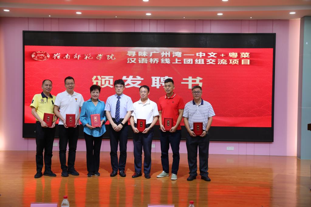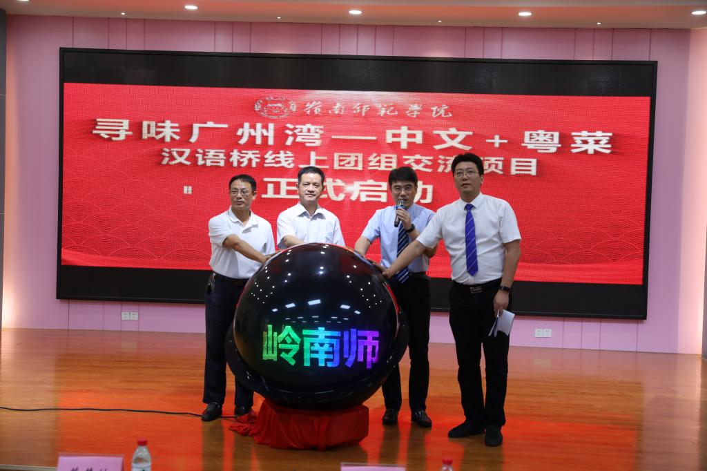 岭师新闻中心讯:7月8日,由岭南师范学院申请教育部中外语言交流合作中心立项支持的“寻味广州湾—中文+粤菜”汉语桥线上团组交流项目(以下简称“汉语桥交流项目”)在岭南师范学院正式启动。学校副校长戴黍,湛江市人力资源和社会保障局党组成员、三级调研员蔡慧敏,省级“粤菜师傅”大师工作室主持人谭小敏出席启动仪式暨工作推进会并致辞。会议由学校国际交流与合作处处长、国际教育与文化学院院长郑志军主持。