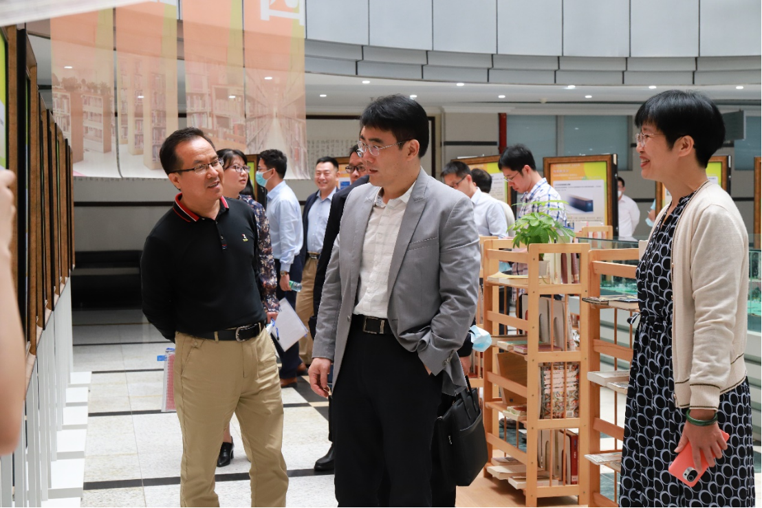 会后,戴黍同各参会人员在馆内参观了“岭读四季,书醒校园”主题书展和《中国教育报》推荐“最喜爱的图书”专题书展。大家在展架前翻阅经典图籍,充分肯定了书展营造出来的读书氛围。