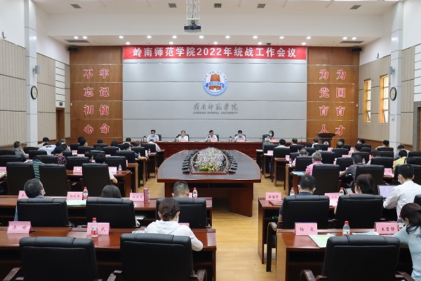岭师新闻中心讯:4月14日,学校在国际会议厅召开2022年统一战线工作会议。会议坚持以习近平新时代中国特色社会主义思想为指导,全面总结回顾2021年学校统战工作,分析当前面临形势,研究部署2022年统战工作。学校党委副书记黄达海出席会议,强调要不断提高统战工作科学化规范化制度化水平,推动学校统一战线工作高质量发展。