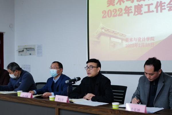 黄达海充分肯定了美院在过去一年所取得的工作成效,同时指出2022年是具有重要意义的一年,美院应紧紧围绕迎接、宣传、贯彻党的二十大这条主线,认真落实学校“1+1+2”工作部署,结合美院专业特色,将十四五规划落到实处。黄达海要求,美院要不折不扣地抓好疫情防控和意识形态工作,维护学院的安全稳定;要把教师作为学院发展的第一资源,形成创新发展的力量;要落实立德树人根本任务,推动课程思政、考研深造、学生评价改革等工作;要持续深化改革创新,提升治理效能和治理水平;要服务地方产业发展,提升学科专业水平;要积极回应师生关切,不断促进发展成果惠及师生。