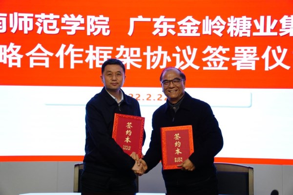 2月22日下午,为推动党史学习教育走深走实,深入调研产学研合作及生物医药(食品工程)硕士专业培育建设工作,积极拓宽办学路径,推进办学事业更好地融入和服务地方经济社会发展,王胜副校长带领食品科学与工程学院领导班子及相关教师赴广东金岭糖业集团有限公司考察,并签署校企战略合作框架协议。食品科学与工程学院书记邱飞、副院长王标诗(负责行政全面工作)、副院长胡小军,广东金岭糖业集团董事长林水栖、副总裁欧如、副总裁林森参加签约活动。