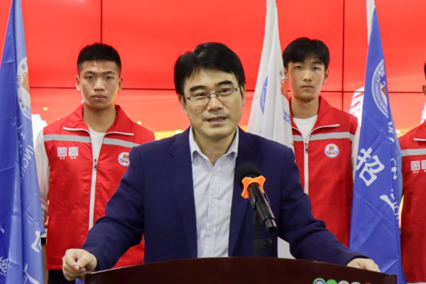 副校长戴黍为宣传队授旗(郭芷欣 摄)
