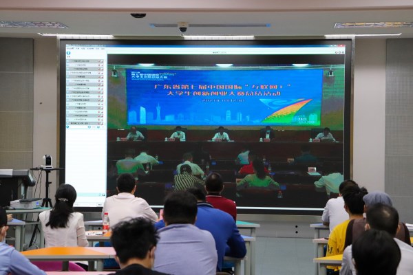 参会人员通过观看视频回顾了广东省第七届中国国际“互联网+”大学生创新创业大赛参赛情况。华南理工大学等5所学校就各自参赛组织工作的举措、特色、亮点作了经验分享。